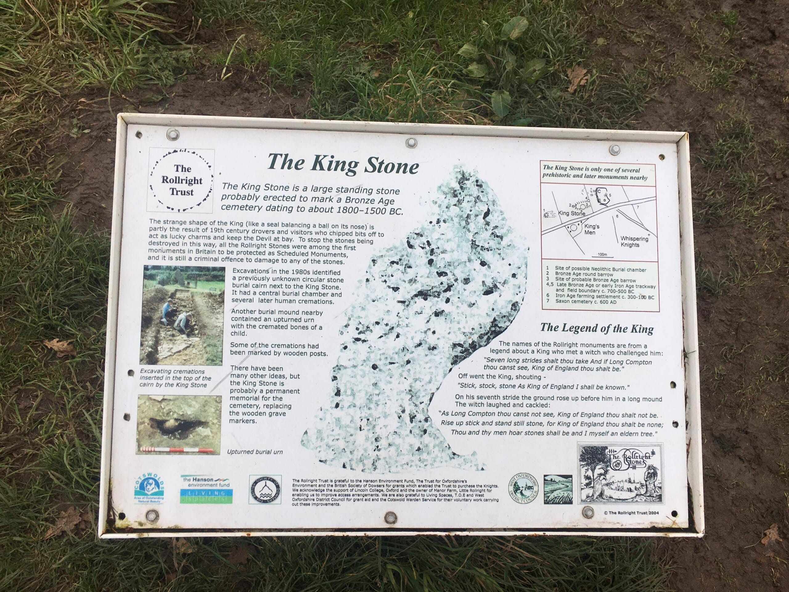 The final place today was the Rollright Stones, there is a large lay-by right next to the site so parking was easy, I was half expecting it to have stiles and not be accessible, but surprisingly the area had a drop kerb followed by a gate wide enough for a wheelchair, there is a grass path between the stone circle and the Whispering Knights which has a mesh plastic underlay to make it wheelchair friendly. Entry costs £1 for adults which you put in a donation box by the entry gate, as parking is free it’s very reasonable. We headed into the field with the King’s Men and saw three witches made of wicker, after taking a photo or two I turned to the stone circle and took more photos, of course I had to go inside the circle and get my PA to take a photo. Next we headed round to the Whispering Knights, I got a nice picture then headed across the road to the King Stone, this field isn’t level and most wheelchairs would struggle, I managed to take one photo out of focus but my hands were so cold by this point I could barely move my fingers and needed to head back to the van.